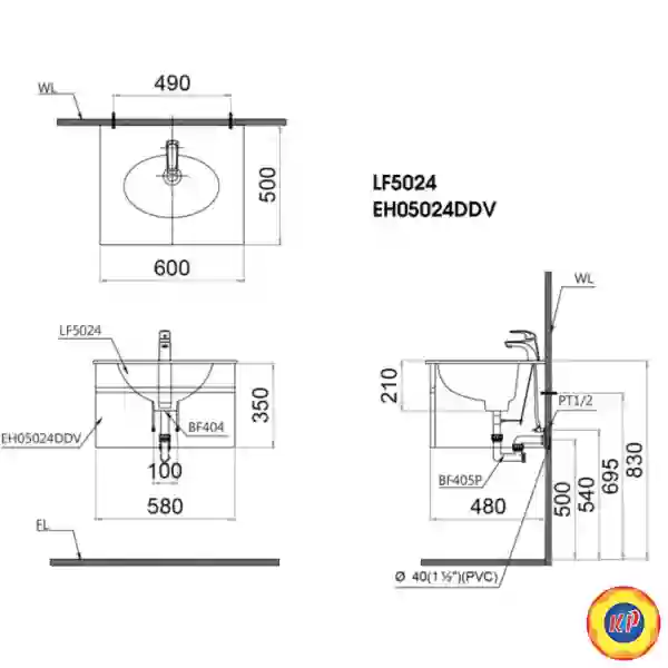 Bản vẽ tủ chậu rửa mặt LF5024+EH05024DDV treo tường
