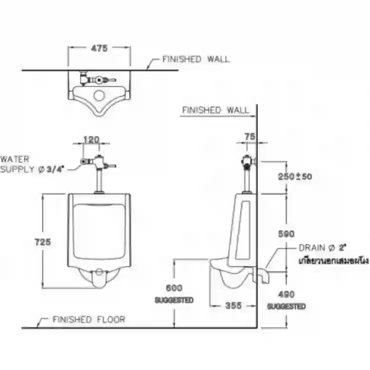 Bản vẽ kỹ thuật Bồn tiểu nam Cotto C 303