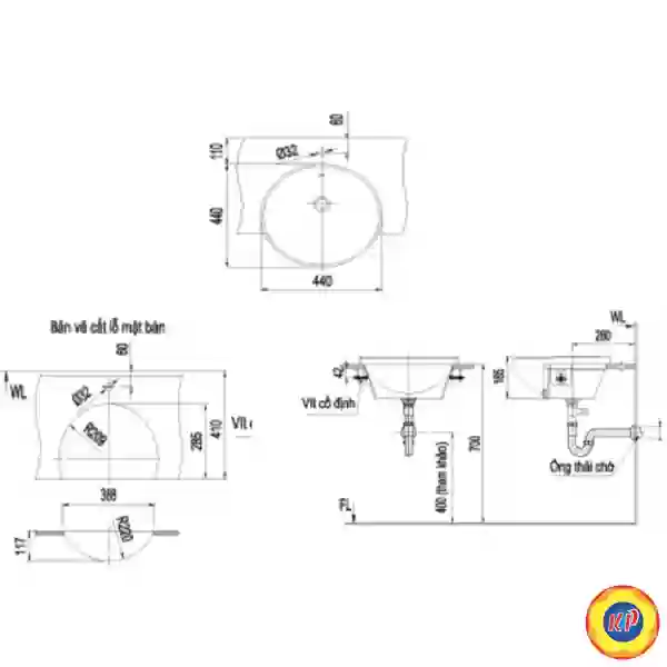 Bản vẽ bồn rửa mặt lavabo INAX L333V