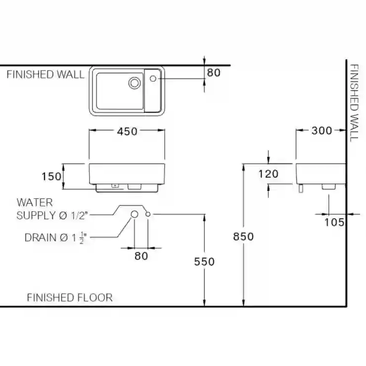 Bản vẽ kích thước chậu lavabo cỡ nhỏ C 00657 Cotto