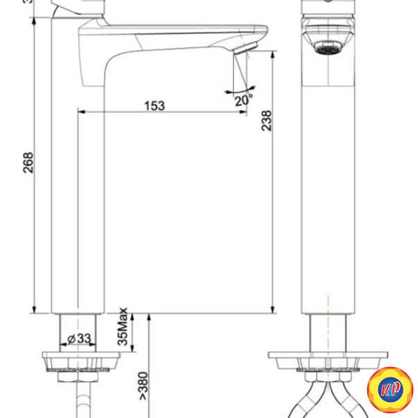 • Vòi rửa nóng lạnh cổ cao với kết cấu bên trong vững vàng