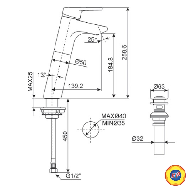 • Áp lực nước: 0.05MPa ~ 0.75MPa