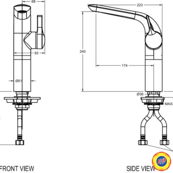 • Áp lực nước: 0.05MPa ~ 0.75MPa
