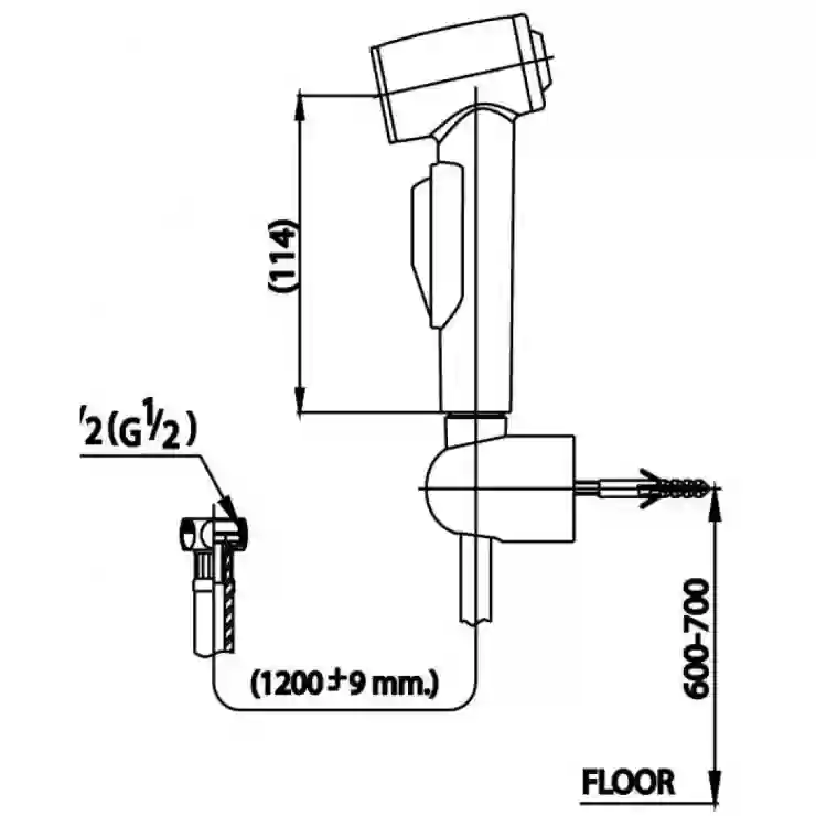 Bản vẽ kích thước vòi xịt CT 980 H WH HM  COTTO